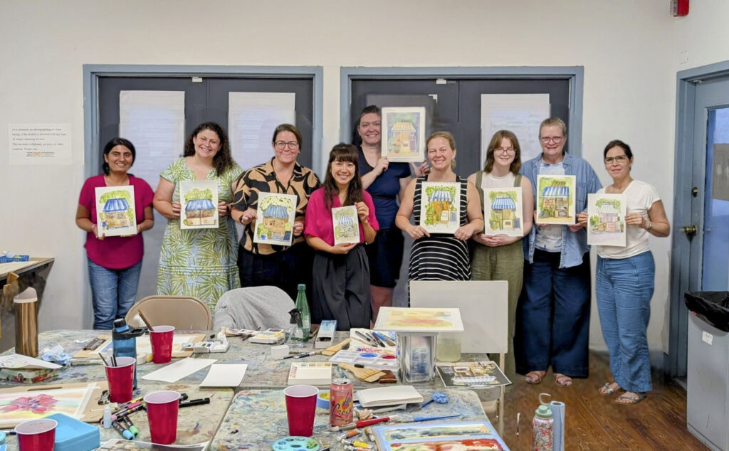 In this workshop we will be creating a bright café scene over two evenings. We will be using a combination of wet-on-wet and wet-on-dry watercolor techniques. You will also learn how to use a waterproof ink pen to draw line work, which will bring your painting to life. Come create a beautiful watercolor painting without being an expert. Cost is $150 per person. Materials will be provided, and students will be able to take home.