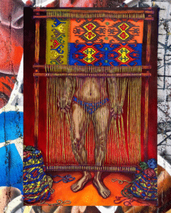 Mär Martinez, a Syrian American artist and Fulbright scholar, presents new work developed during her 2025–26 Fulbright research in Istanbul. Her project investigates traditional Turkish and Middle Eastern textile techniques while reflecting on themes of urbanization, surveillance, and cultural memory. Drawing from nighttime walks through Istanbul’s neighborhoods, Martinez transforms architectural barriers, barbed wire, fences, hostile design, into motifs of resistance and reweaving. Her haunting wood paintings explore personal heritage, global textile history, and contemporary social commentary in poetic, layered form.
