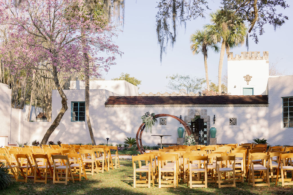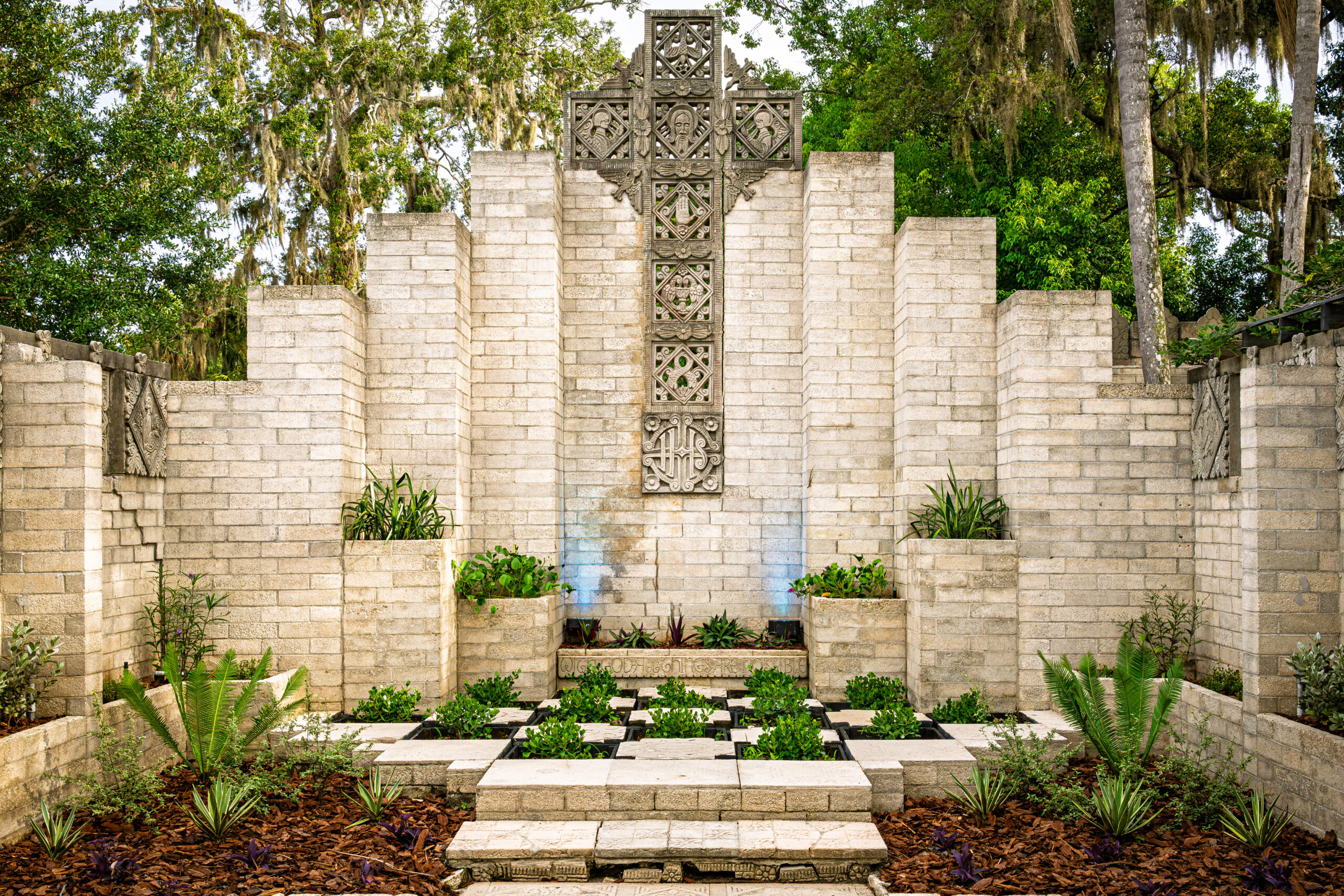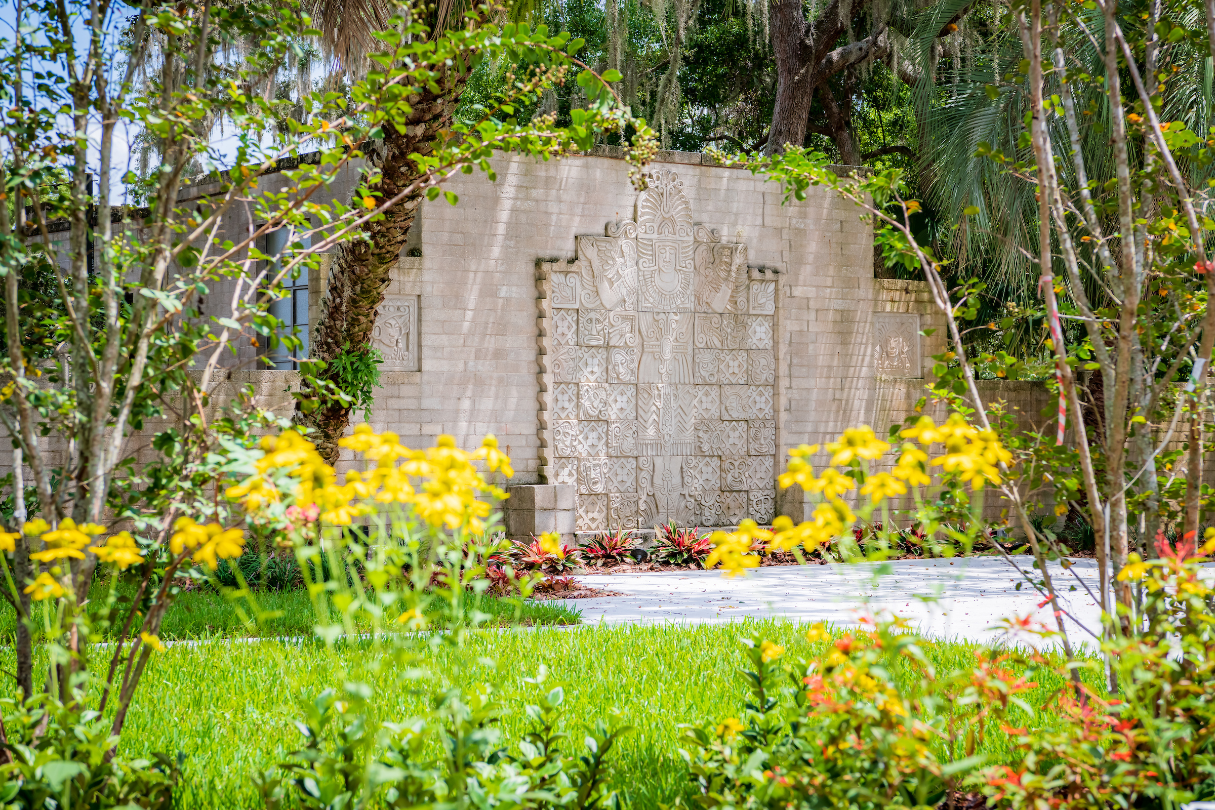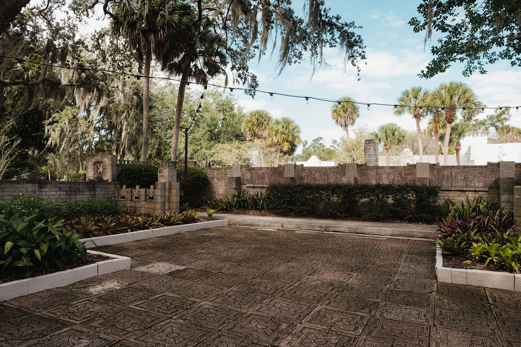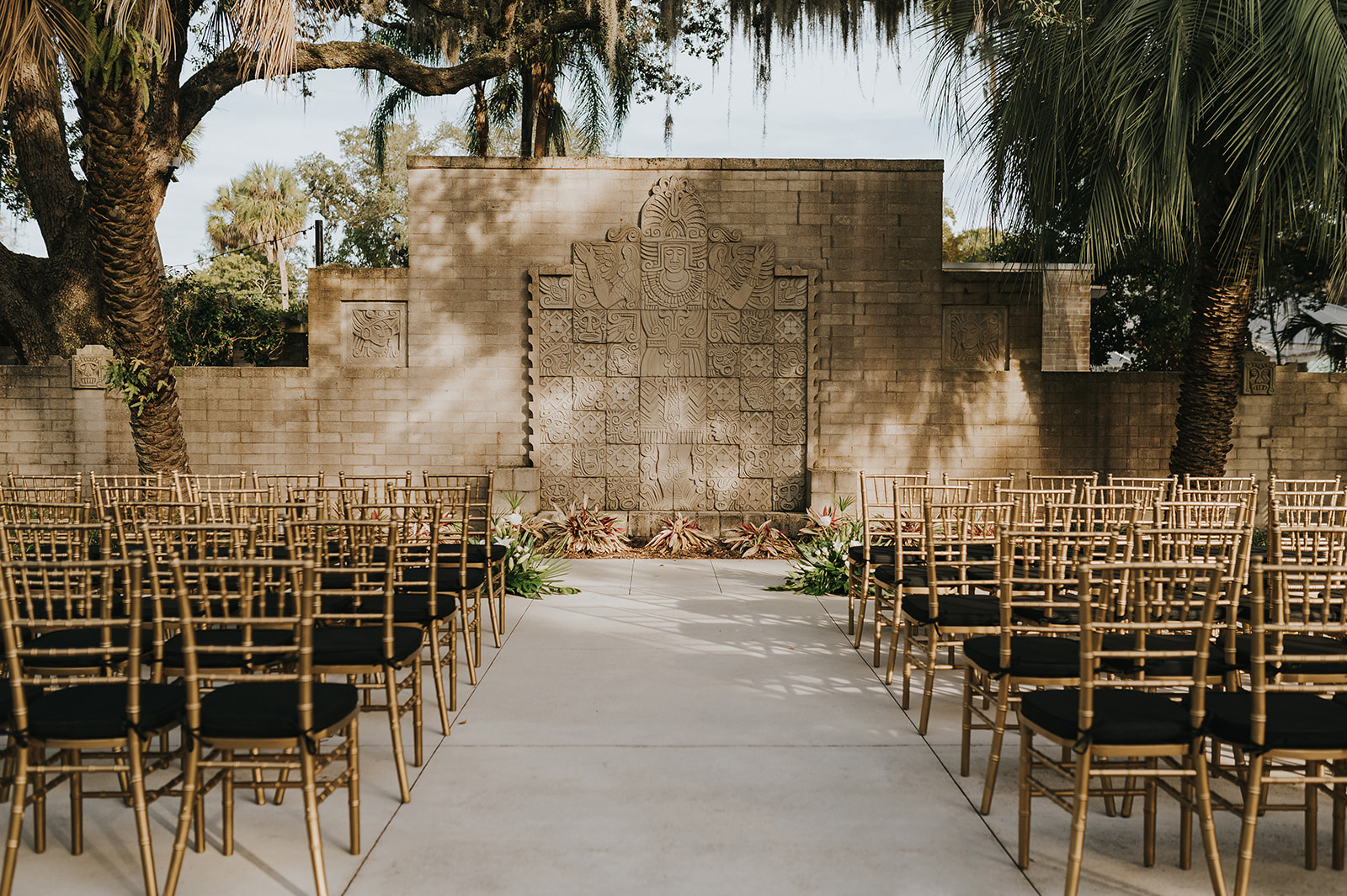 The breathtaking cornerstone of the National Historic Landmark campus of A&H’s Maitland Art Center, the Mayan Chapel & Courtyard boasts a truly unique atmosphere. Your guests are enveloped by stunning architecture that appears to be cradled in the surrounding nature. The intimate size of the enchanting chapel is enhanced by ornate sculptures and carved floor tiles that lead the way to a small pond where couples can recite their vows.