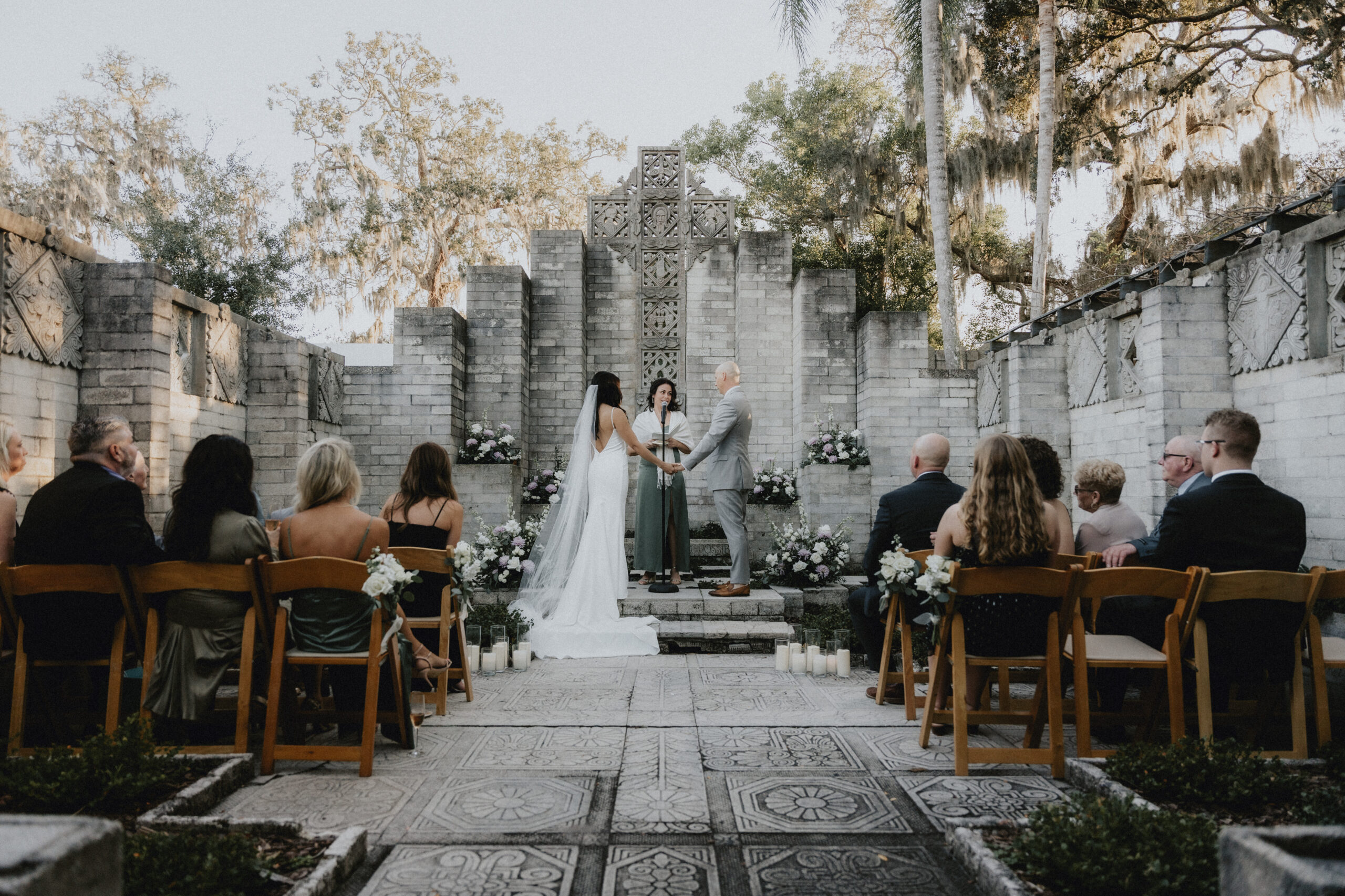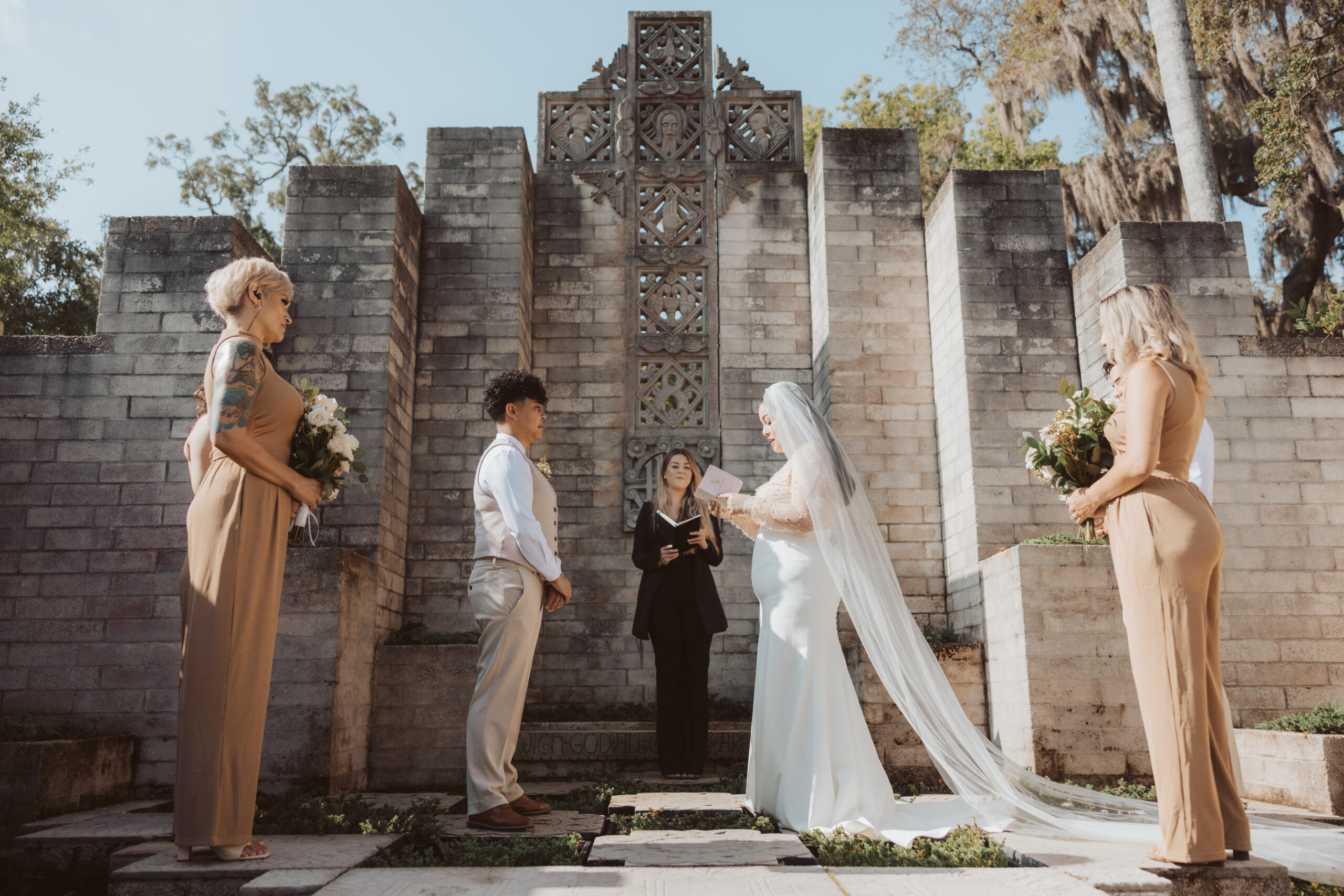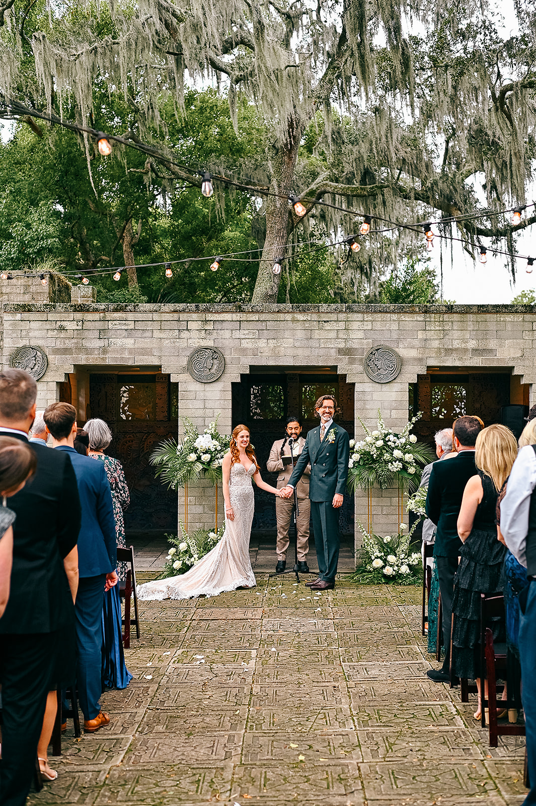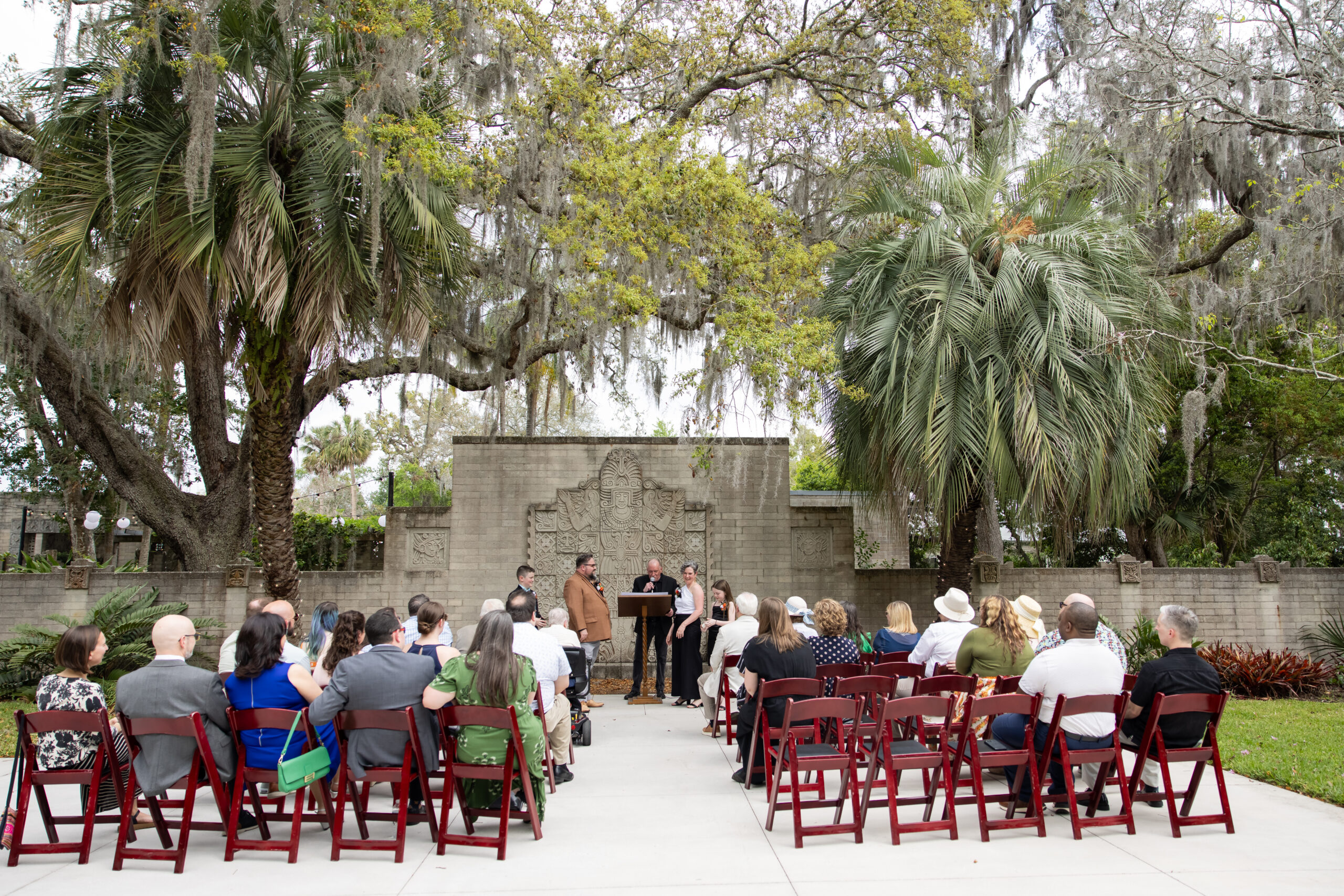 The breathtaking cornerstone of the National Historic Landmark campus of A&H’s Maitland Art Center, the Mayan Chapel & Courtyard boasts a truly unique atmosphere. Your guests are enveloped by stunning architecture that appears to be cradled in the surrounding nature. The intimate size of the enchanting chapel is enhanced by ornate sculptures and carved floor tiles that lead the way to a small pond where couples can recite their vows.